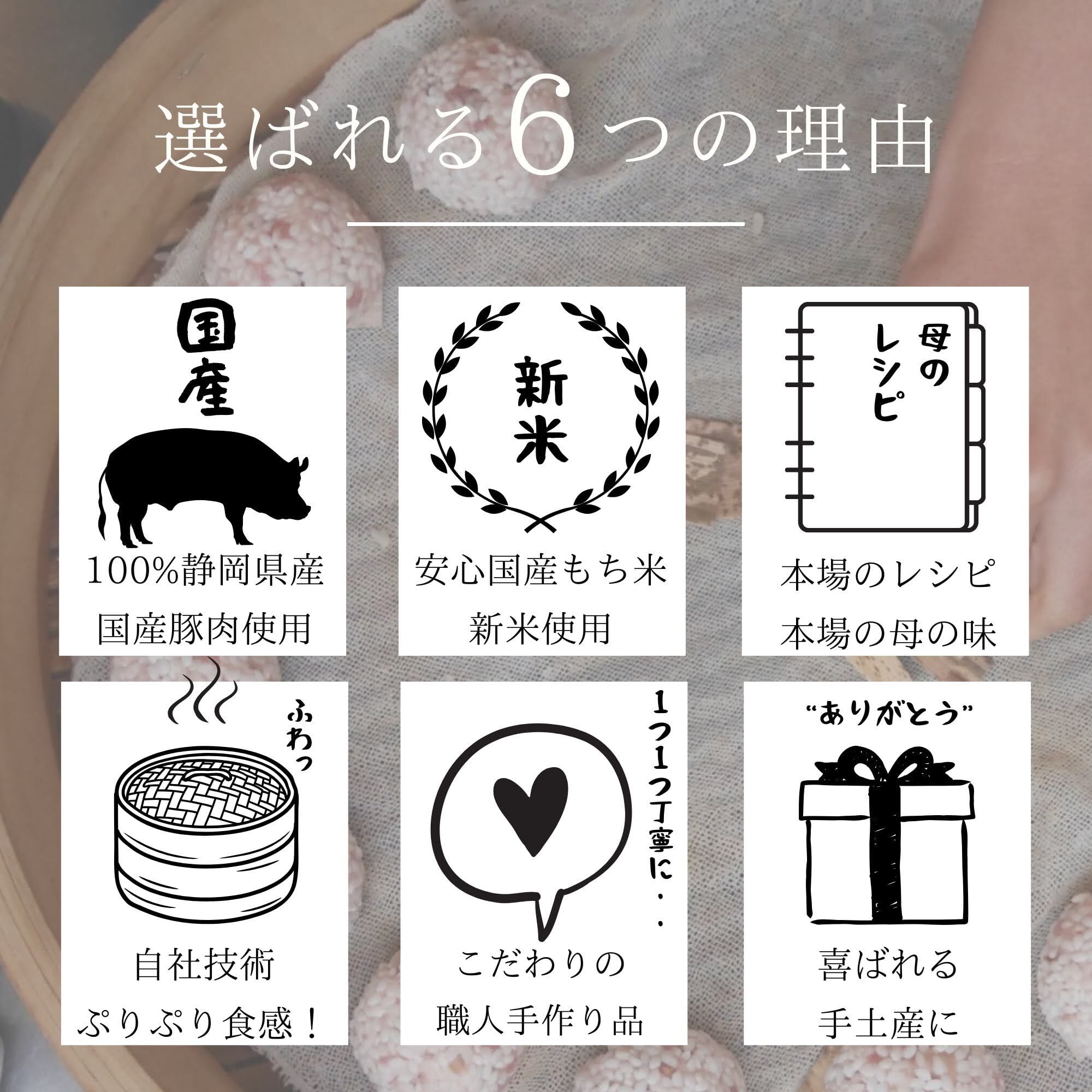 静岡県産の豚肉で作った餡をもち米で包んだ